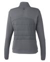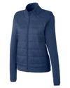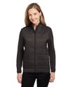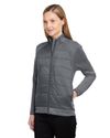 Stretch Knit: 63% polyester, 33% rayon, 4% spandex, 315 grams; Quilted Nylon: 100% nylon, 35 grams; Fill: 100% recycled polyester, 60 grams;Sleek low-profile mock-neck; Center front coil zipper, internal draft flap; Debossed Spyder neck tape & internal locker loop; Strategically placed stretch panels for mobility; Stylized front and back seams; Secure zip hand pockets with phone and coin sleeves; External side drop-in pockets; Elastic cuff binding; Iconic reflective ‘Bug’ logo at back neck; Reflective Spyder wordmark at left wrist; Global Recycled Standard Certified;