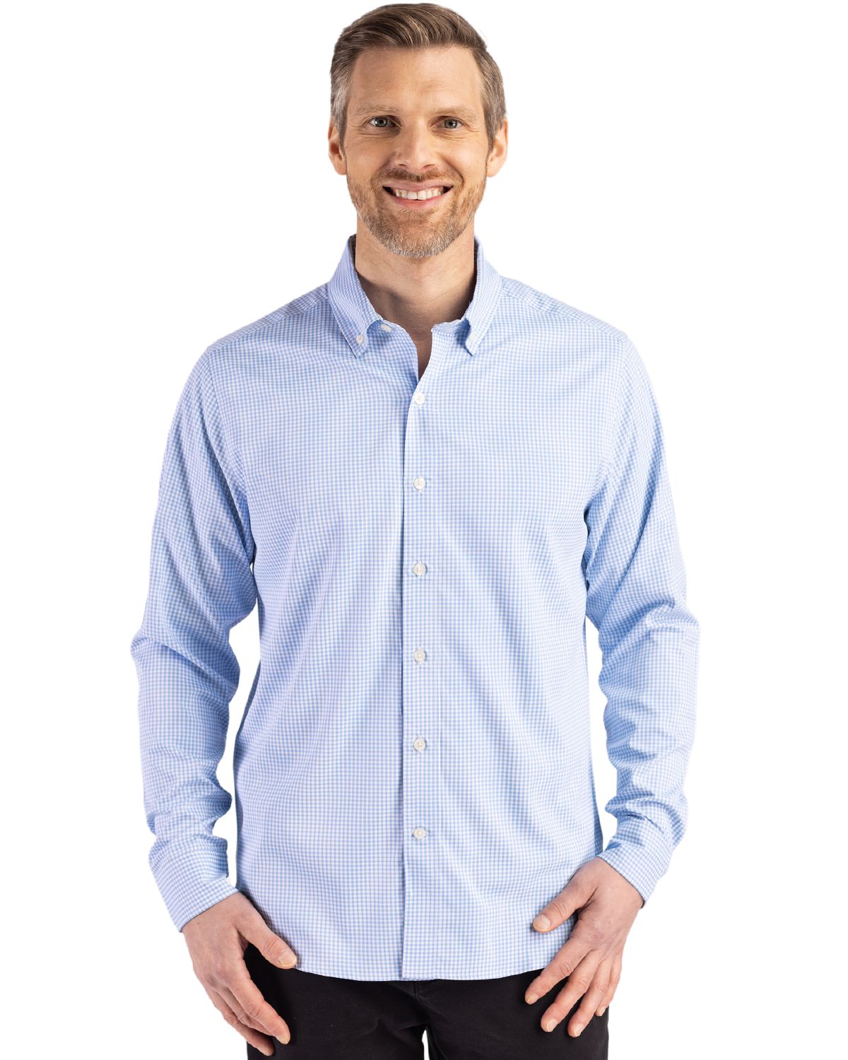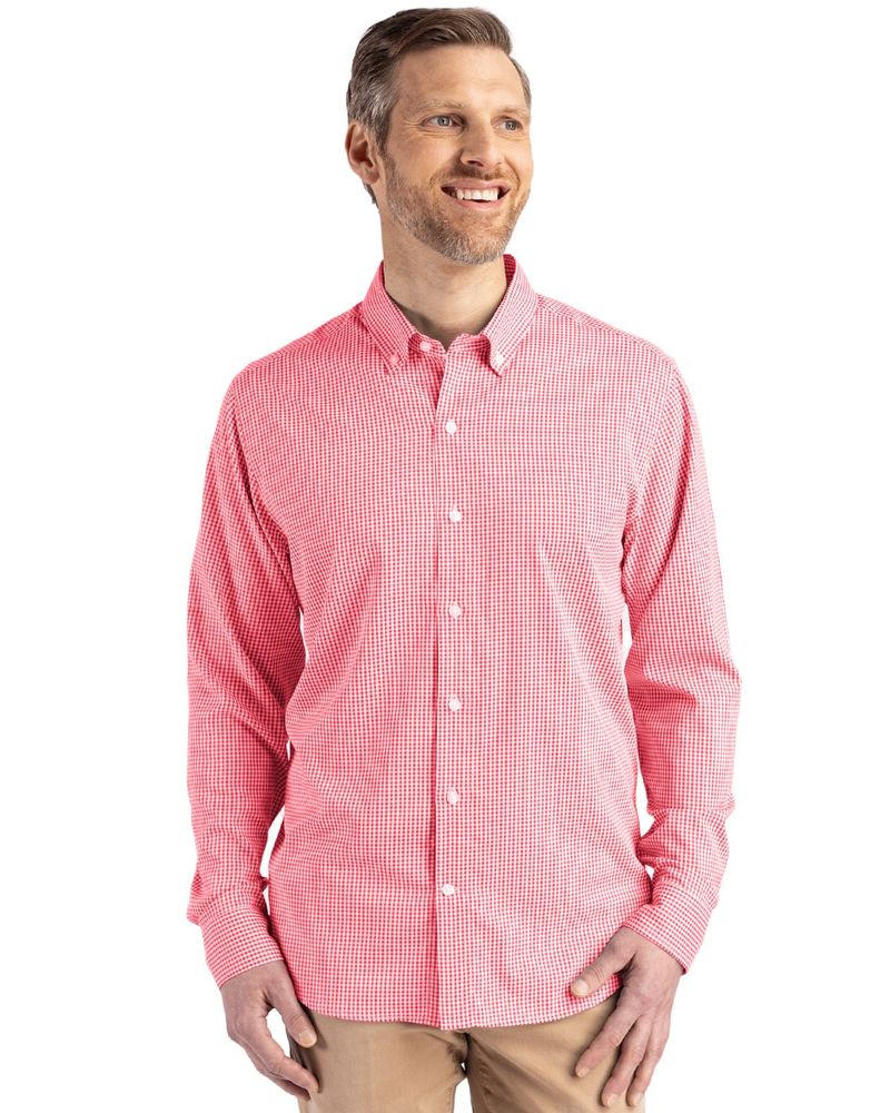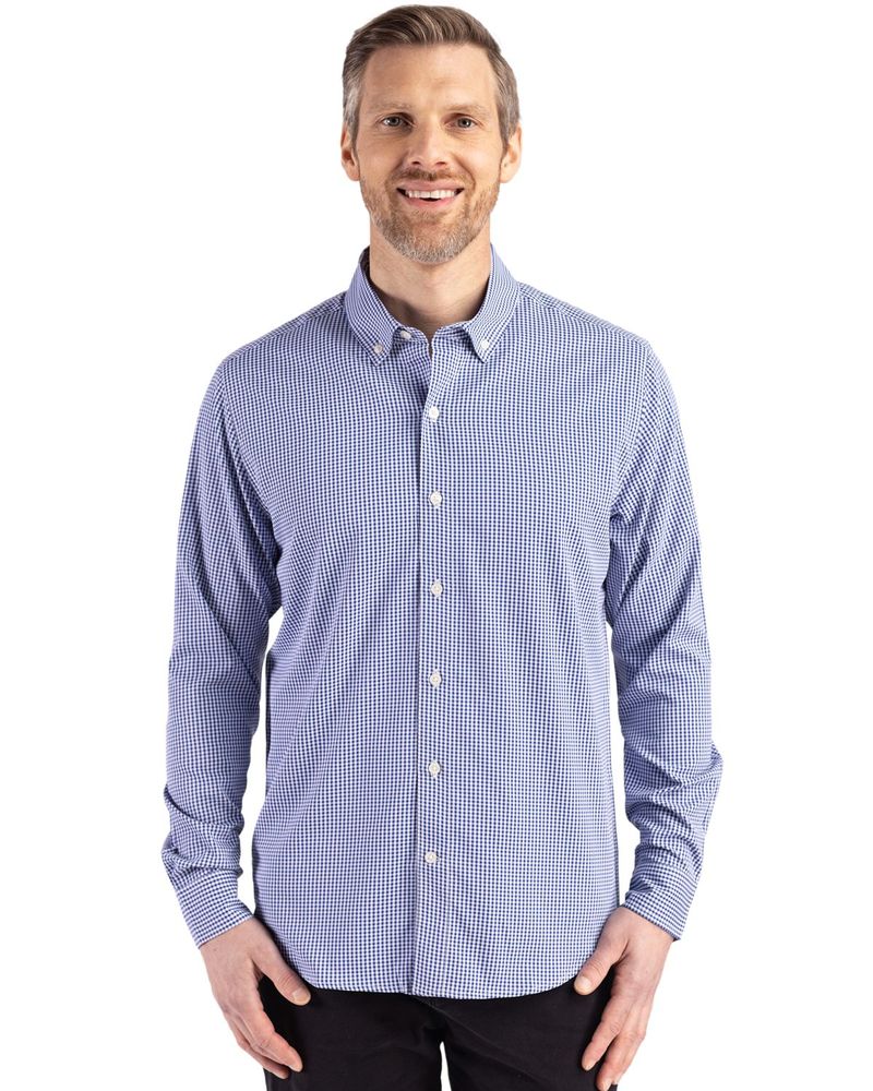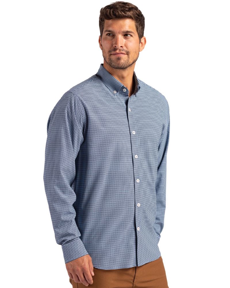 Cutter & Buck Skyline Epic Confidence Recycled Gingham Mens Long Sleeve Dress Shirt
