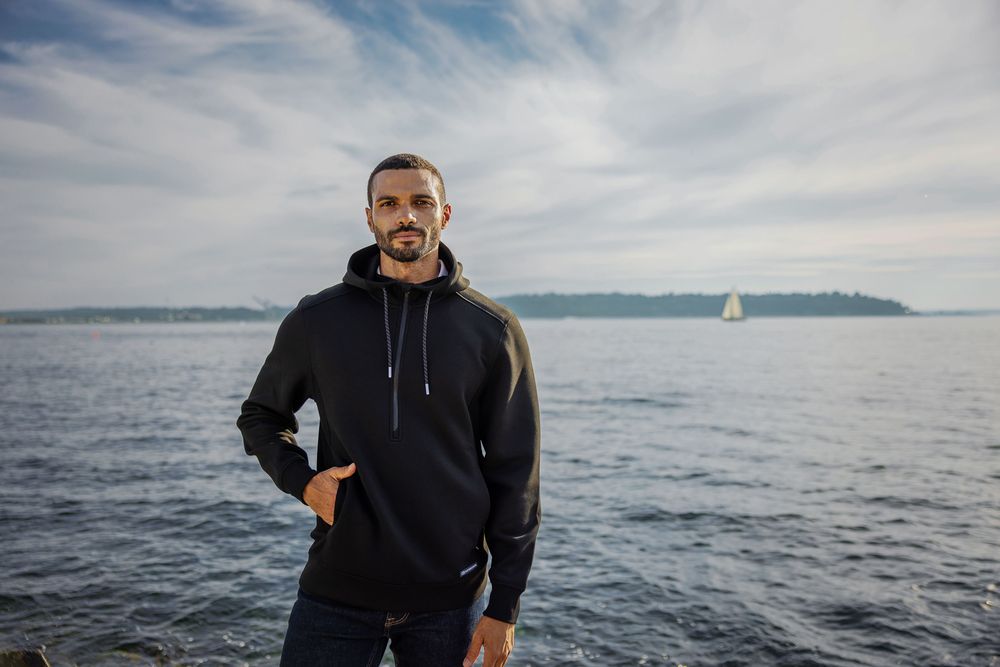- Features hood with drawcord and longer half zip for on-the-go comfort
