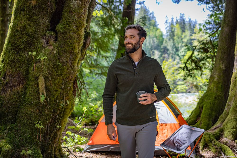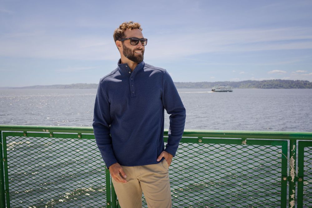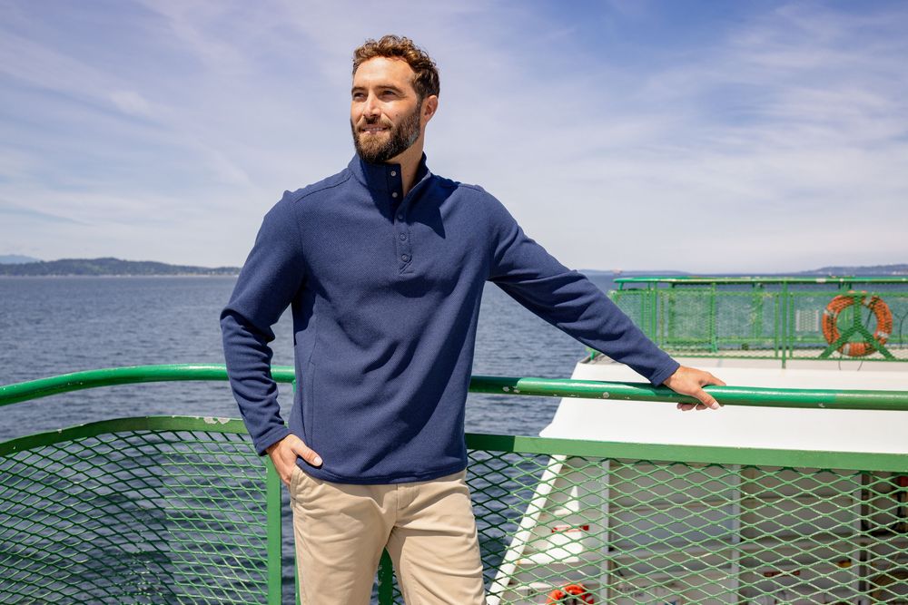 The iconic Hunts Point Eco Textured Fleece Pullover is engineered for exceptional versatility, designed to be your favorite mens pullover for your active life: golf, hiking, skiing, travel, workouts, work, recharging, or a night out. Exceptionally soft, jacquard textured recycled fleece offers enhanced thermo-regulation and superior moisture wicking breathability. Comfort blended from high quality certified eco-friendly recycled polyester and finished with a versatile snap placket closure so you can do well for yourself and the planet.