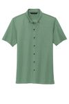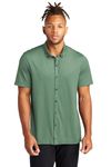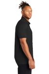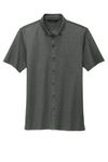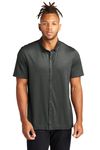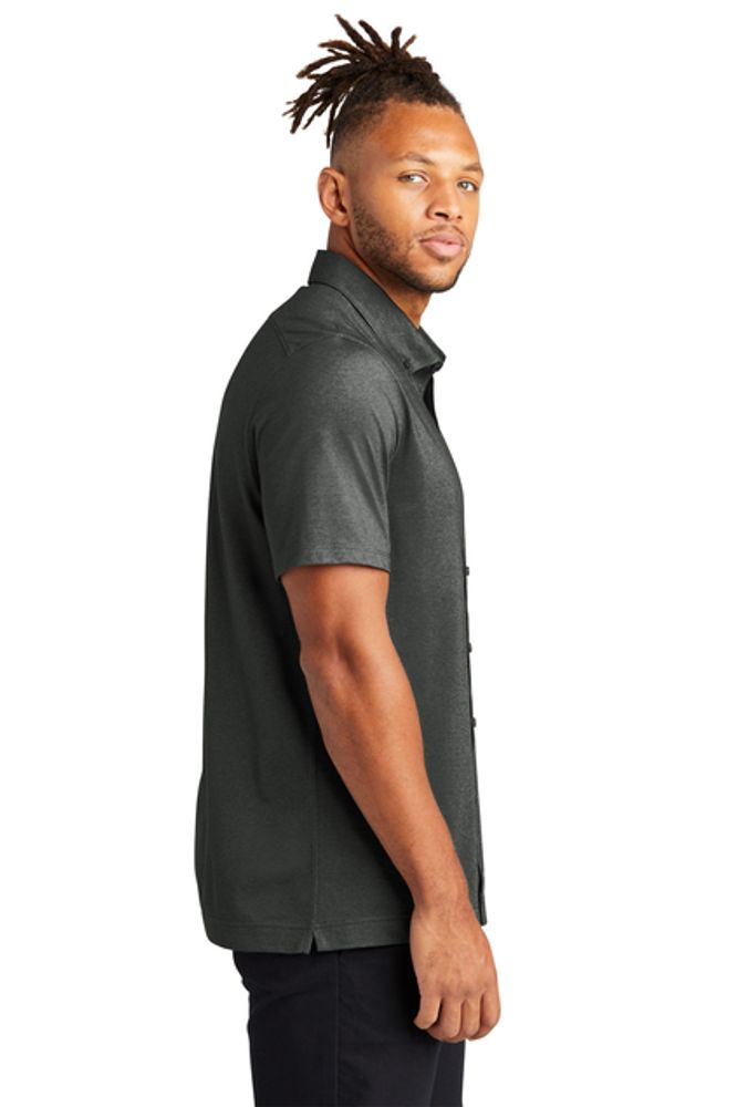 • Combining the smart tailoring of a woven shirt with the movement and comfort of a soft knit, this shirt eases between night and day. The polished silhouette complements office wear, while the moisture-wicking fabric make it perfect for post-work play. A back yoke seam notched vent hem, and satin-finished buttons extend the contemporary profile.Fabric+Weight