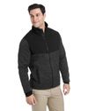Stretch polyester sweater knit with 75% recycled polyester, 25% polyester bonded Sherpa fleece interior; Interior: 97% polyester, 3% spandex ;Vislon center front zipper with rubberized zipper pull; Internal draft flap ; Debossed Spyder neck tape & internal locker loop; Brushed Tricot chin guard; Stretch polyester chest & shoulder overlays; Stylized front & back yoke; Forward-set quilted shoulder seams; Hand pockets with snaps; Interior stretch storm cuffs with thumb holes; Raised silicone Spyder bug patch; High definition rubberized Spyder wordmark at center back;