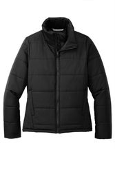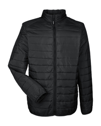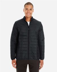 82% nylon, 18% elastane matte finish; Fill: 100% recycled polyester ;Exposed reverse-coil zipper, internal draft flap; Adjustable hood cinch-cord; Jacquard 'Spyder' tape at interior hood; Tricot-lined collar for added comfort; Debossed Spyder neck tape & internal locker loop; Secure zip chest pocket; Strategically placed baffles for added warmth & low bulk; Back reflective tape for increased visibility; Exposed, reverse-coil hand pocket zips; Two internal drop pockets; Secure back zip pocket for added storage; Adjustable, internal hem cinch-cord;